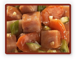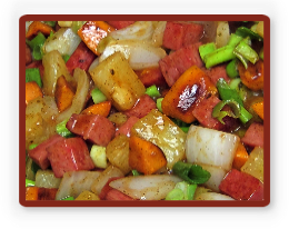 pineapple chunks, sweet and green onions,